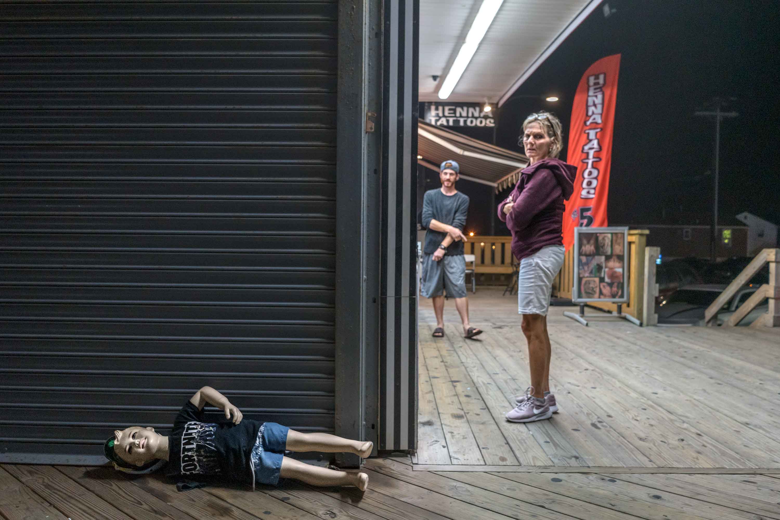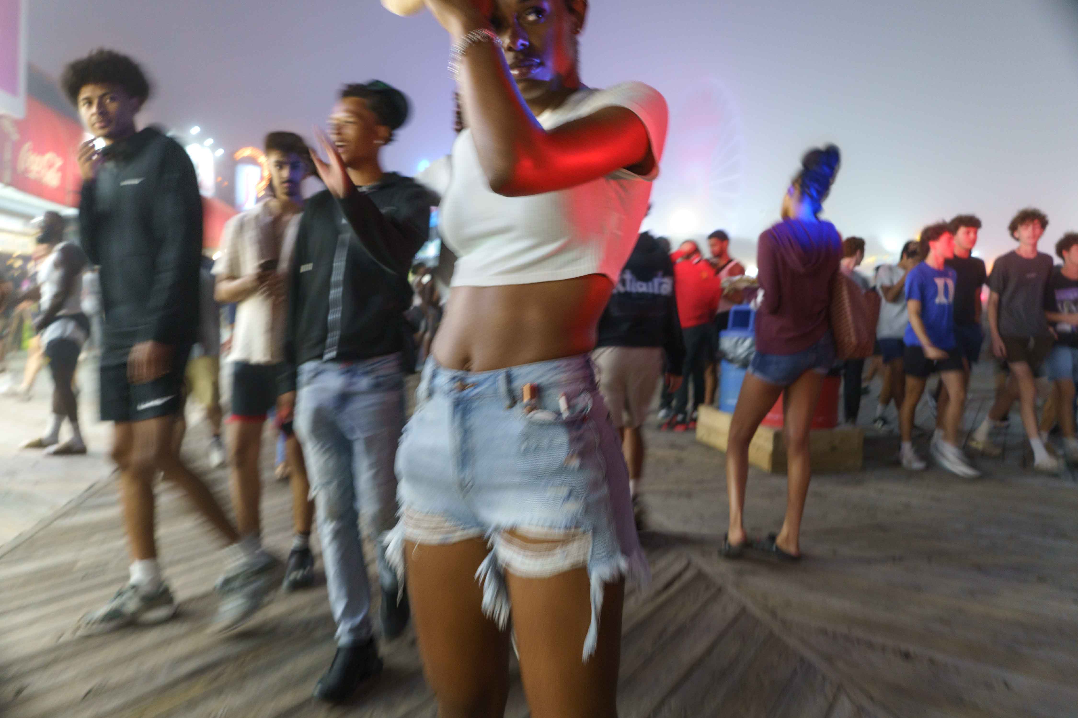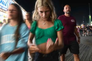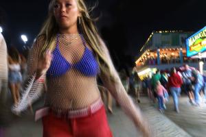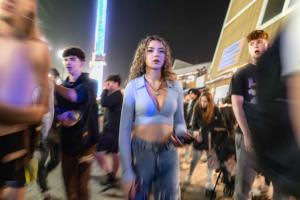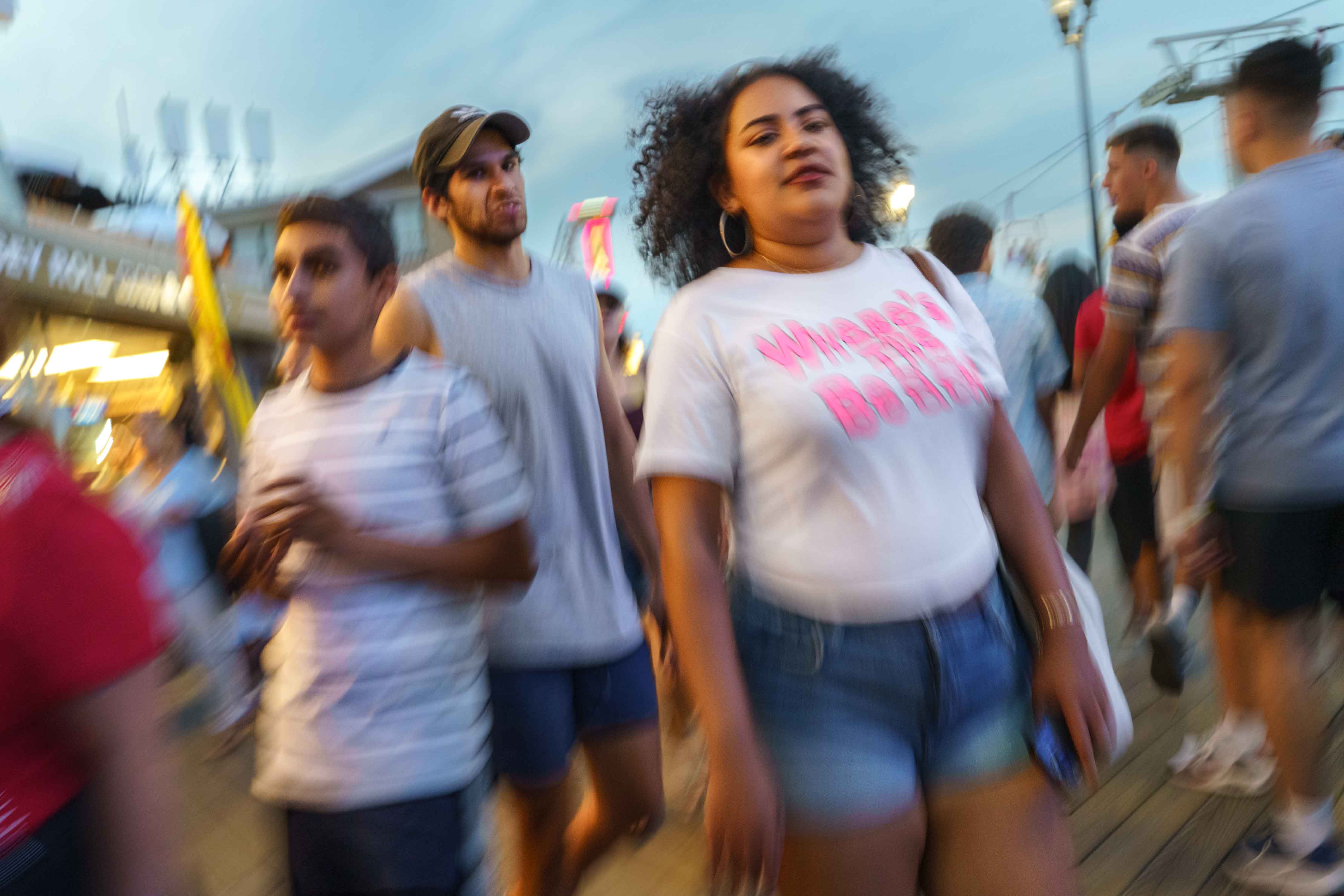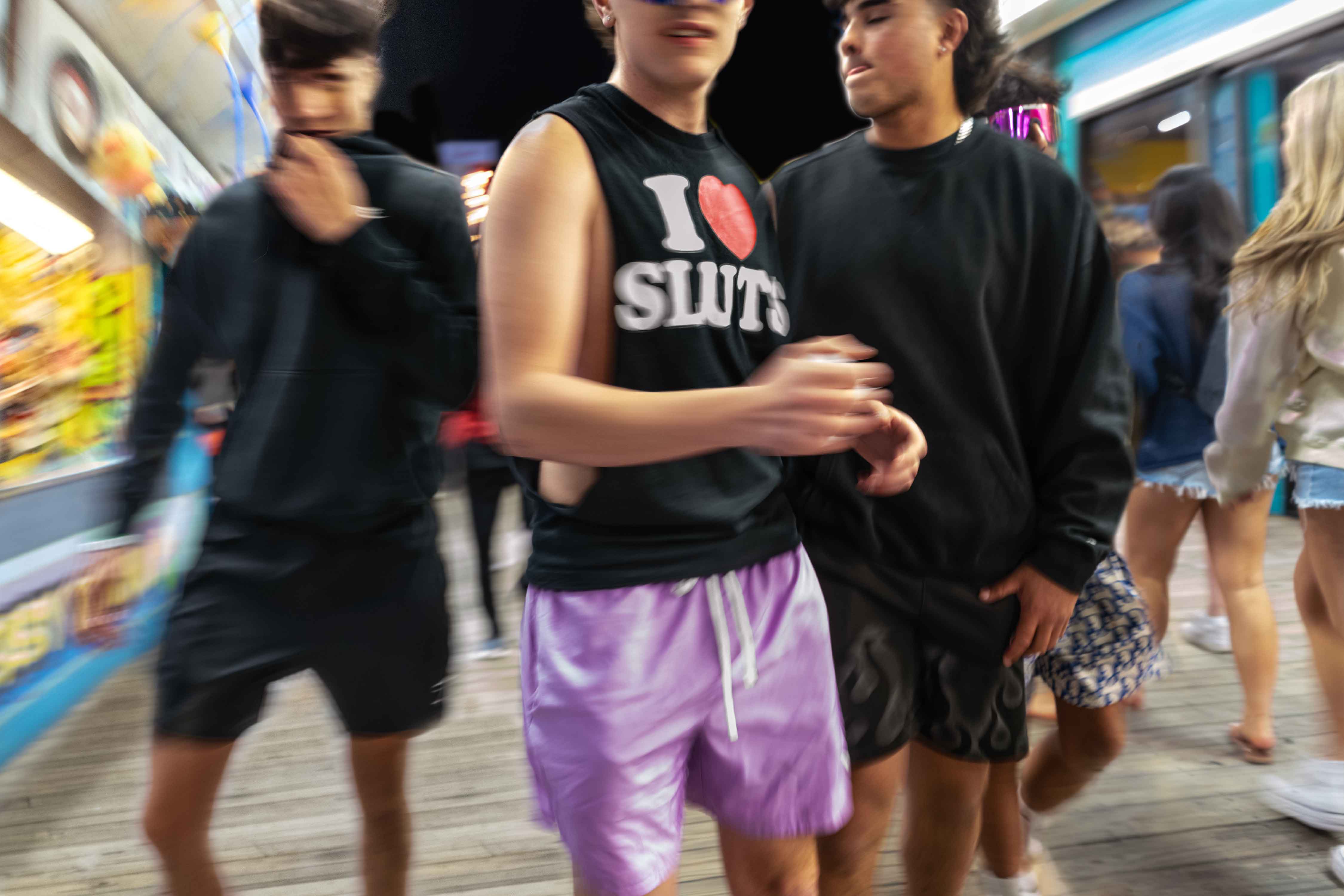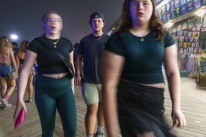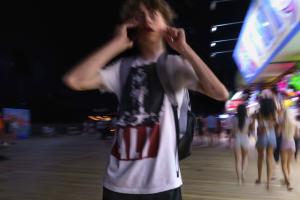 I watched life after dark with a bit of an anthropologist’s detachment - I remember seeing the scene as a person from a different culture might. But actually I was watching my own peers, my own culture. While other people were wrapped up in socializing, I noticed how differently teenagers acted and dressed when they gathered at night on the boardwalk, out of the watchful eyes of adults - the posturing, the roughhousing, the extroversion so extreme it almost seemed forced. (They look like they are having fun, behaving as young people ought - should I be behaving that way, too?) I looked at the frank uninhibitedness of drunken behavior, dancing bodies looking disjointed under the pulsating strobe, the exaggerated conversational gestures made necessary by music far too loud for normal conversation. I wondered what made the others so different from me. I wondered if I should (or could) join the rest of the world. I never did decide.