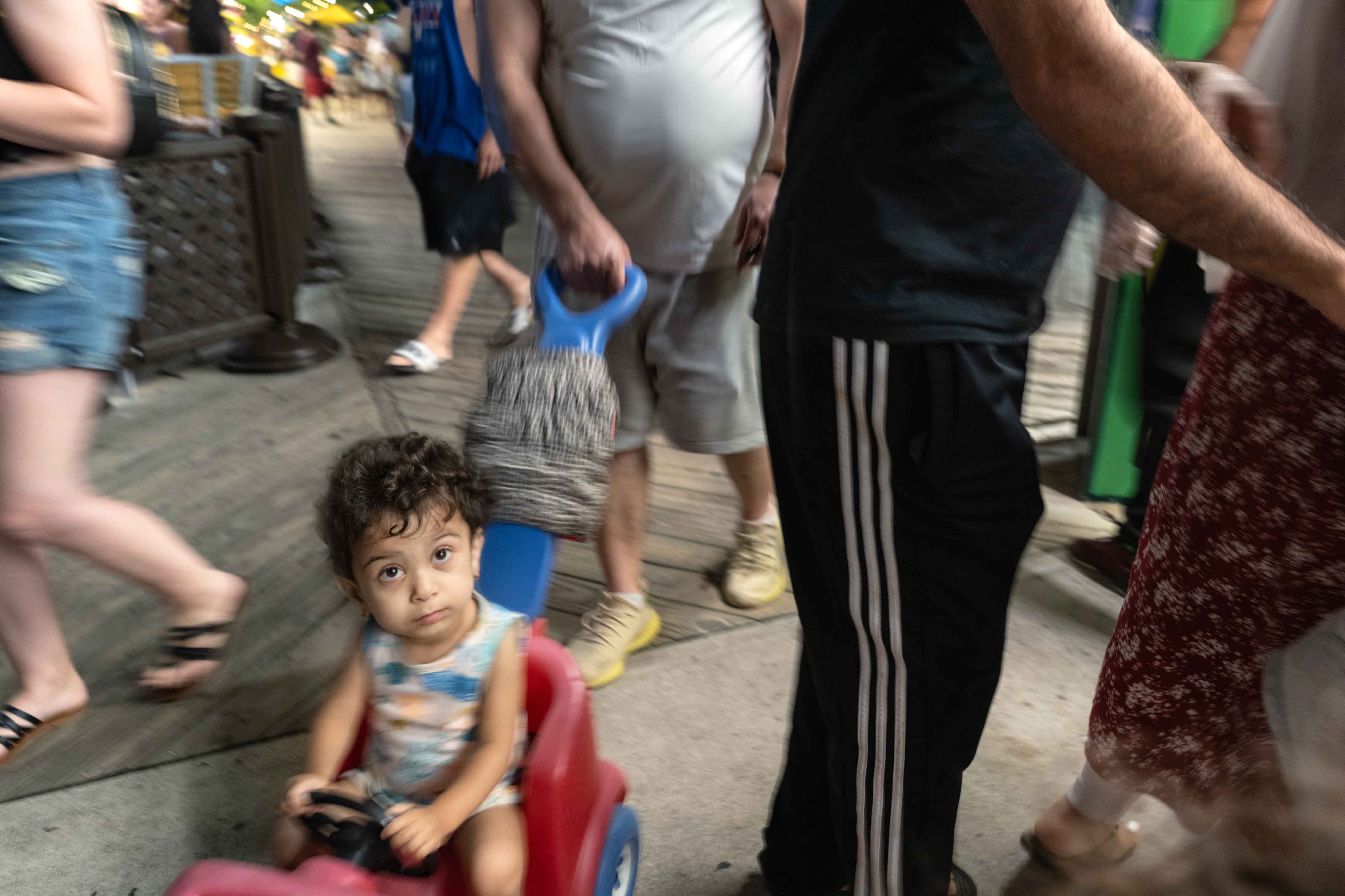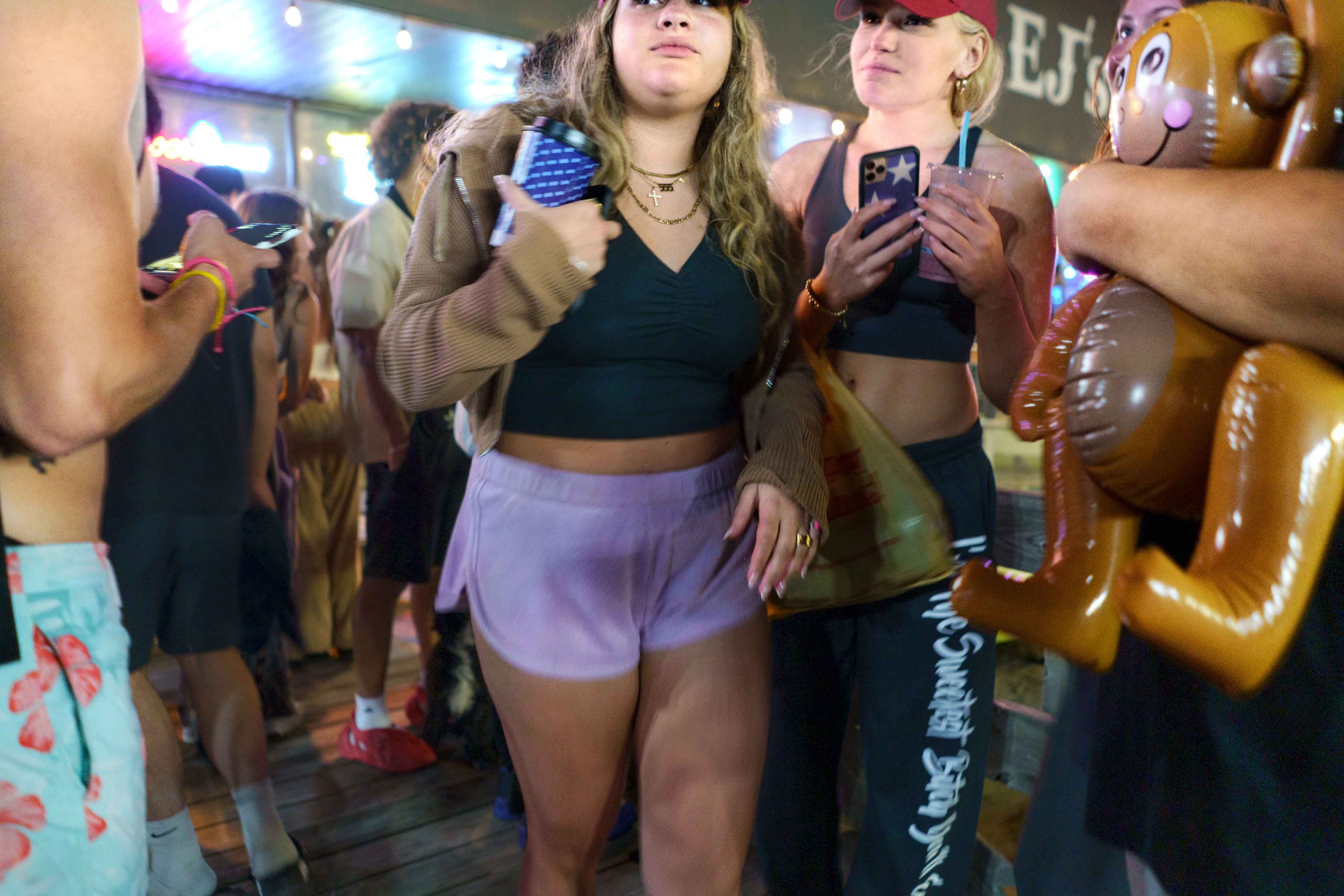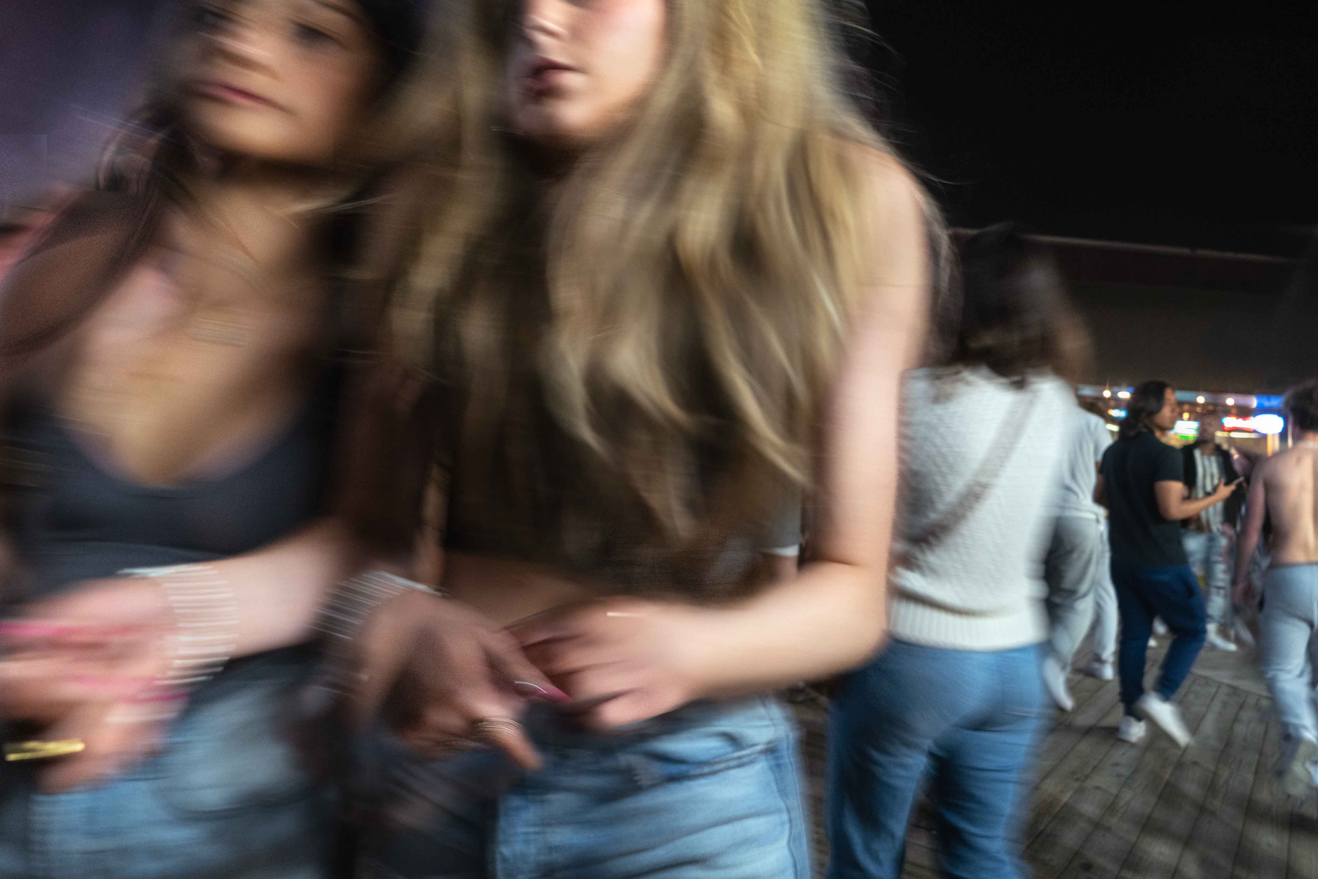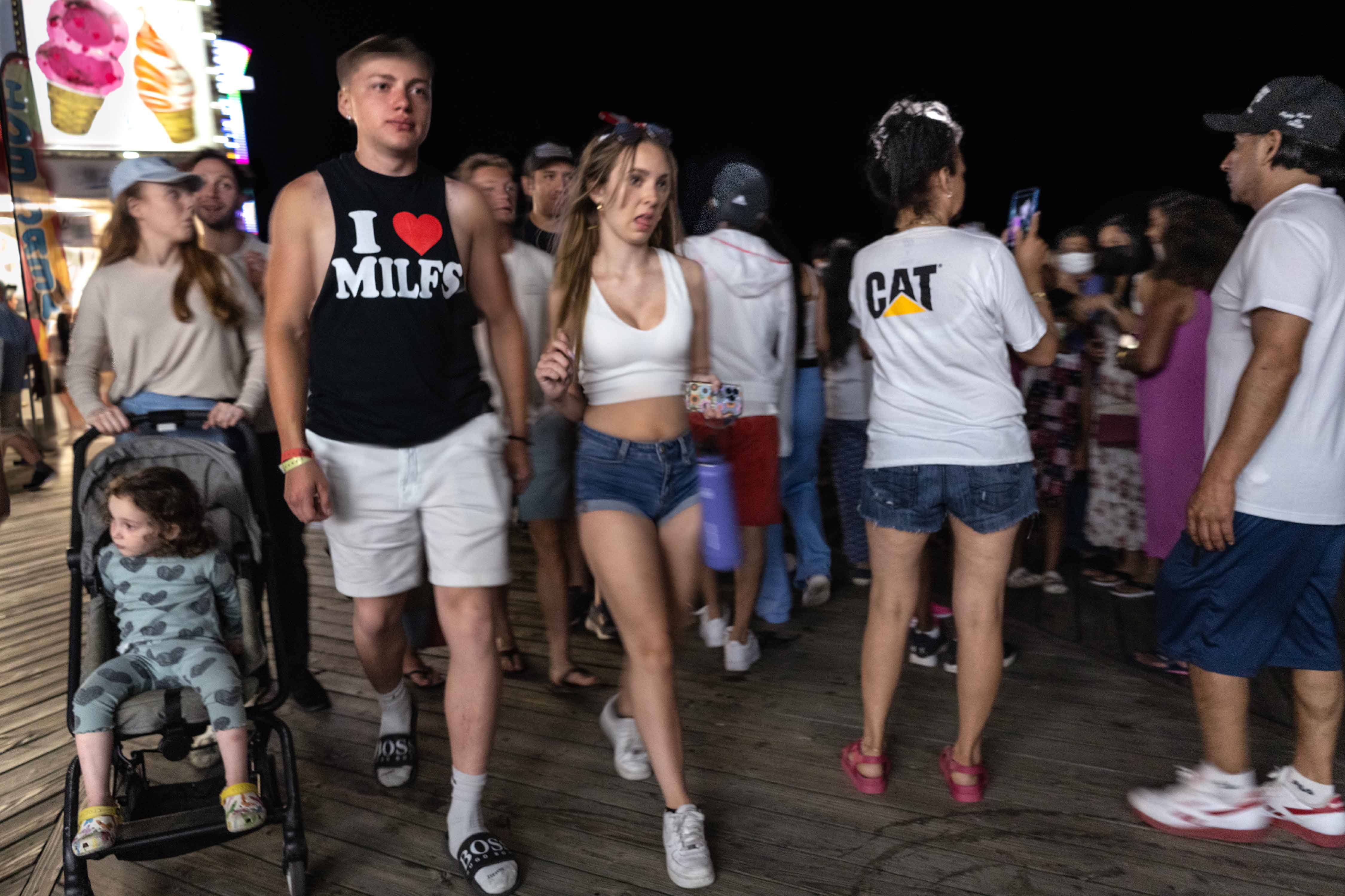 I watched life after dark with a bit of an anthropologist’s detachment - I remember seeing the scene as a person from a different culture might. But actually I was watching my own peers, my own culture. While other people were wrapped up in socializing, I noticed how differently teenagers acted and dressed when they gathered at night on the boardwalk, out of the watchful eyes of adults - the posturing, the roughhousing, the extroversion so extreme it almost seemed forced. (They look like they are having fun, behaving as young people ought - should I be behaving that way, too?) I looked at the frank uninhibitedness of drunken behavior, dancing bodies looking disjointed under the pulsating strobe, the exaggerated conversational gestures made necessary by music far too loud for normal conversation. I wondered what made the others so different from me. I wondered if I should (or could) join the rest of the world. I never did decide.