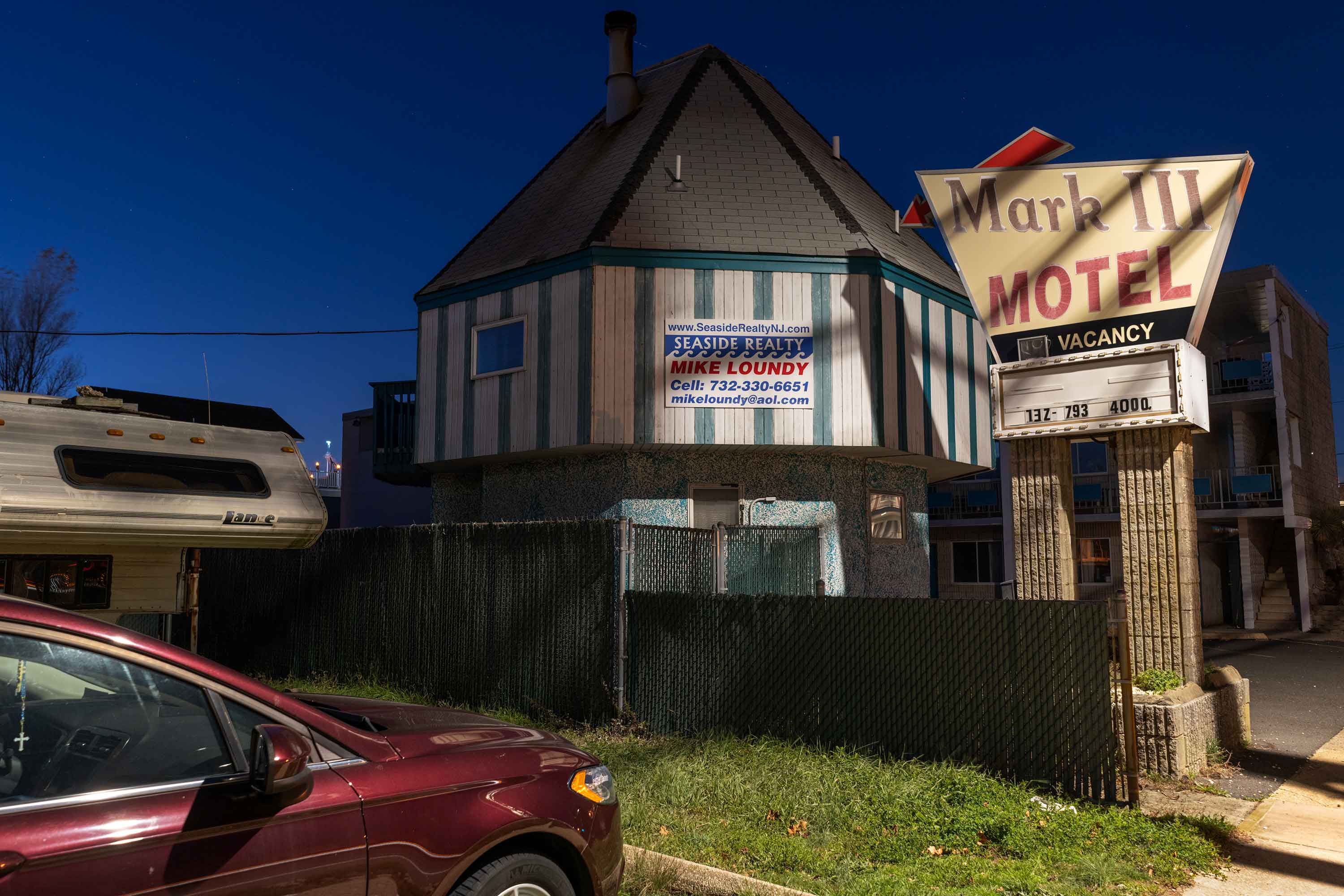 From 2018-2023, I lived 5 blocks away. Seaside became my neighborhood. During quarantine, I referred to photographing Seaside’s side streets as ‘doing my walk-abouts.’ But even well after local walks were the only way for me to escape from my apartment, I’d sometimes hit the streets to wander with my camera, poking about to see if something might inspire me. I never had a pre-set idea of the kind of pictures I wanted to make, but I did know what interested me about the town - the summertime crowds, (even if their presence was only implied by closed game booths and shut-off water slides), the kitschy architecture, the dichotomy between a vibrant beach resort and very economically depressed populace (it’s consistently one of the poorest towns in the state. Because Ocean county has no dedicated facility for the unhoused, a significant portion of that population live in Seaside’s motels).